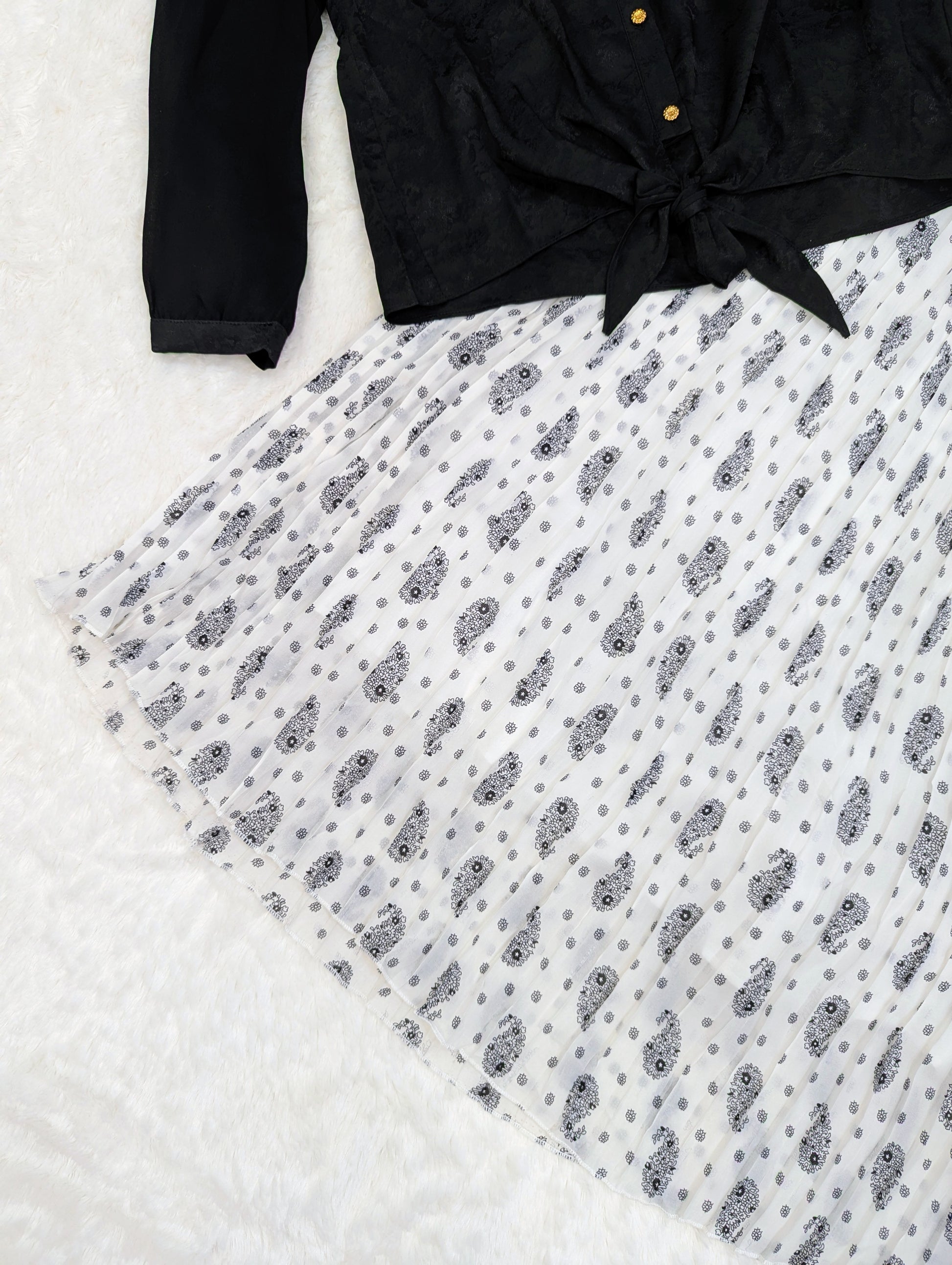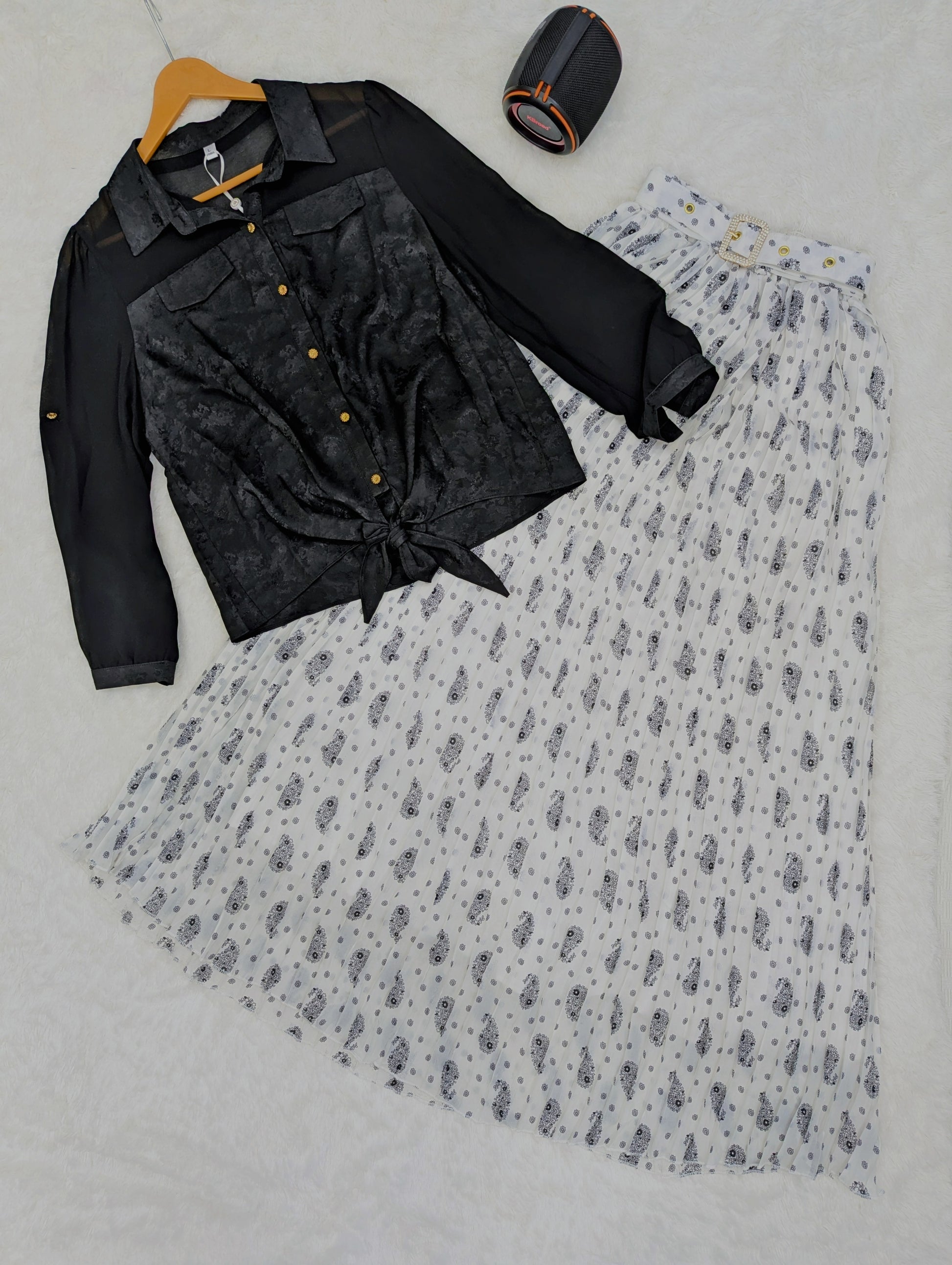 Al Shifa Western Black & White Pleated Skirt Set